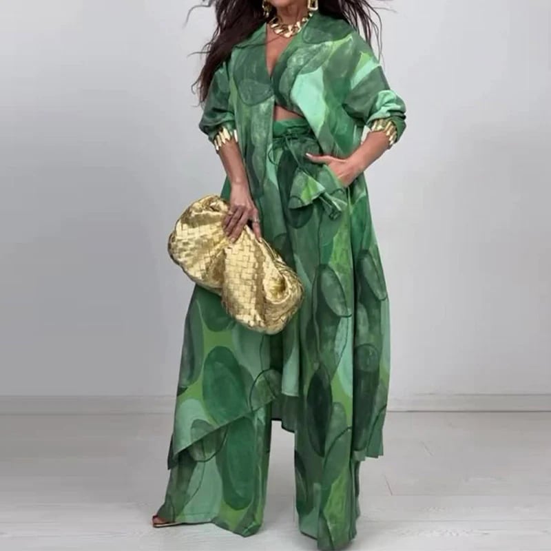 FASHIONABLE PRINT DESIGN: This set makes a bold style statement with an artistic, abstract print. The coordinated pattern creates a harmonious overall look and lends the outfit a distinctive aesthetic that stands out from typical resort looks.