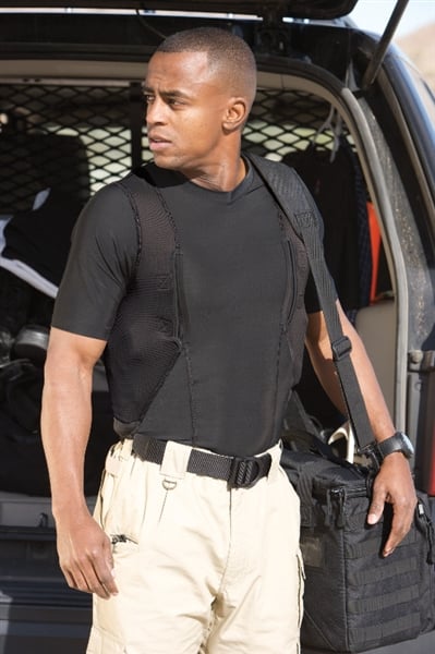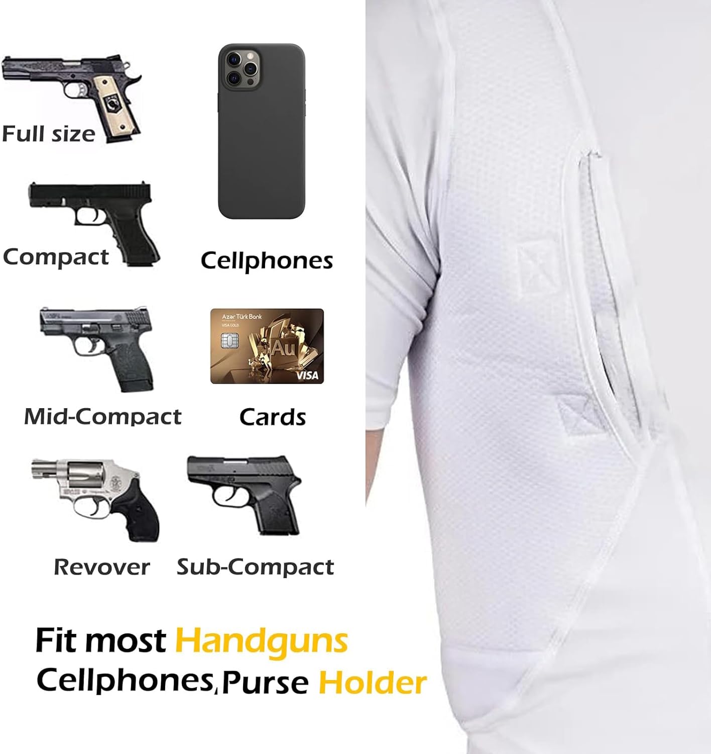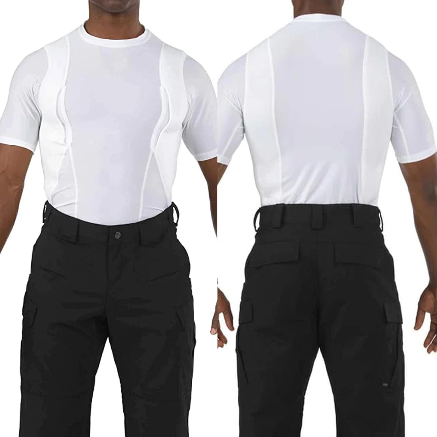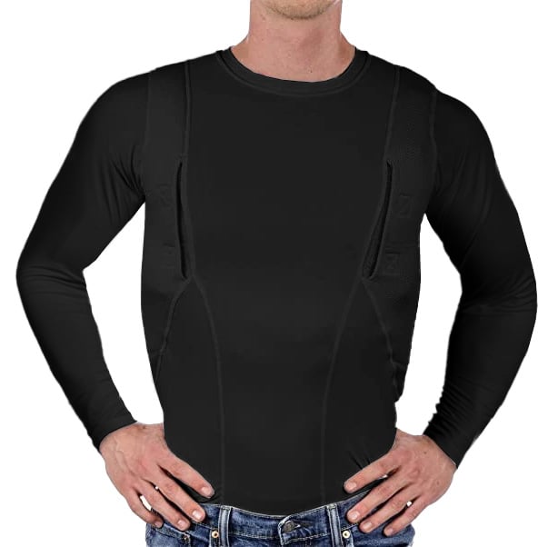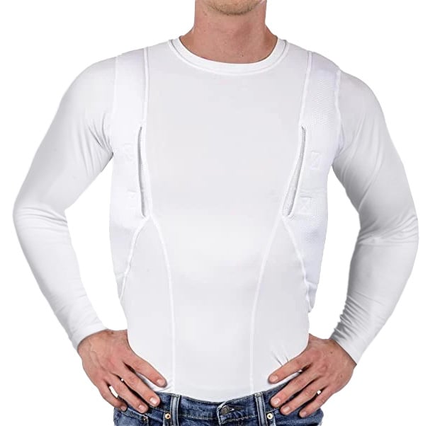 The holster is compatible with most handguns and features a secure retention system to keep your firearm in place. Padded mesh layers eliminate sagging, and obscure the profile of your pistol or revolver under just about any clothing. Plenty of extra space for magazines, phones, small electronics, pepper spray, LVAD, or other personal gear for use in sports, undercover, police, military, combat, assault, and covert applications! Short sleeve tee shirt style LOOKS AND FEELS GREAT, indoors or out, under your button-down shirt, t-shirt, or pullover!
