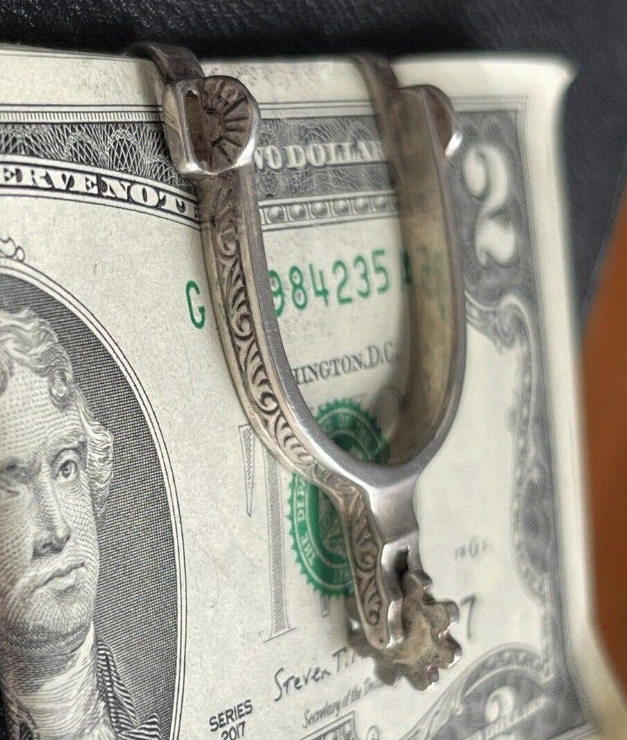 RUGGED ELEGANCE – Inspired by the spirit of the Old West, this sterling silver money clip features finely detailed western spurs—symbolizing grit, freedom, and timeless frontier charm. It’s a rustic statement with refined edge.